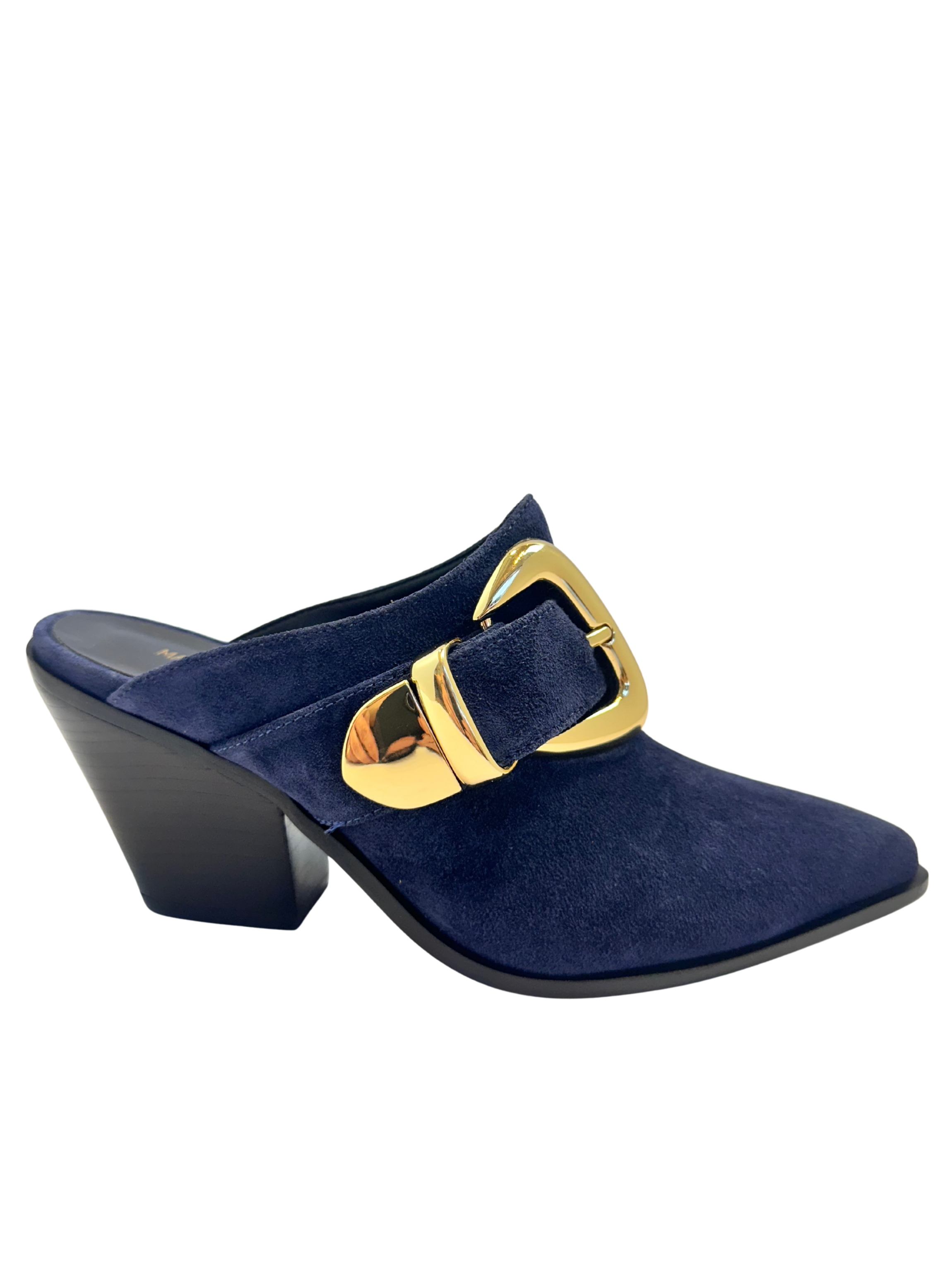 Mule Camurça Marinho Maxi Fivela Dourada